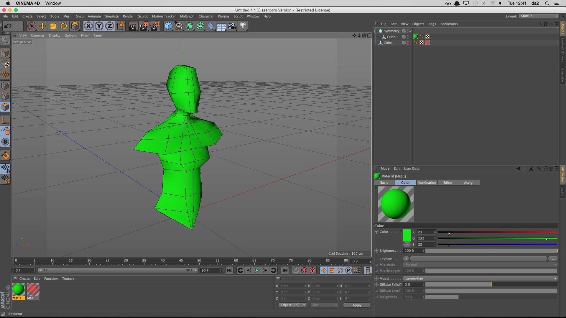 After I had a head and a torso modelled, I needed to use the symmetry tool to create the arms and legs.