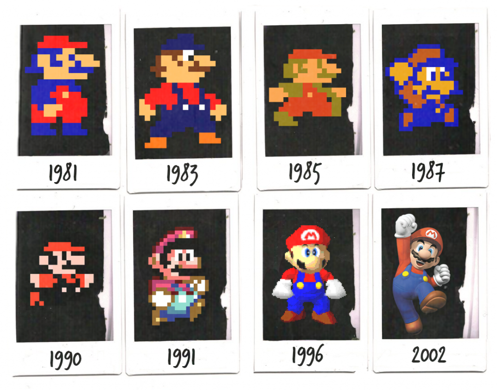 For our homework, we had to find 6-10 images that we didn’t create, and use them to form a visual/digital narrative. For mine, I decided to show the evolution of the iconic mario game character. The narrative shows the progression from the early forms of his character to the more globally recognisable version we are currently akin to.