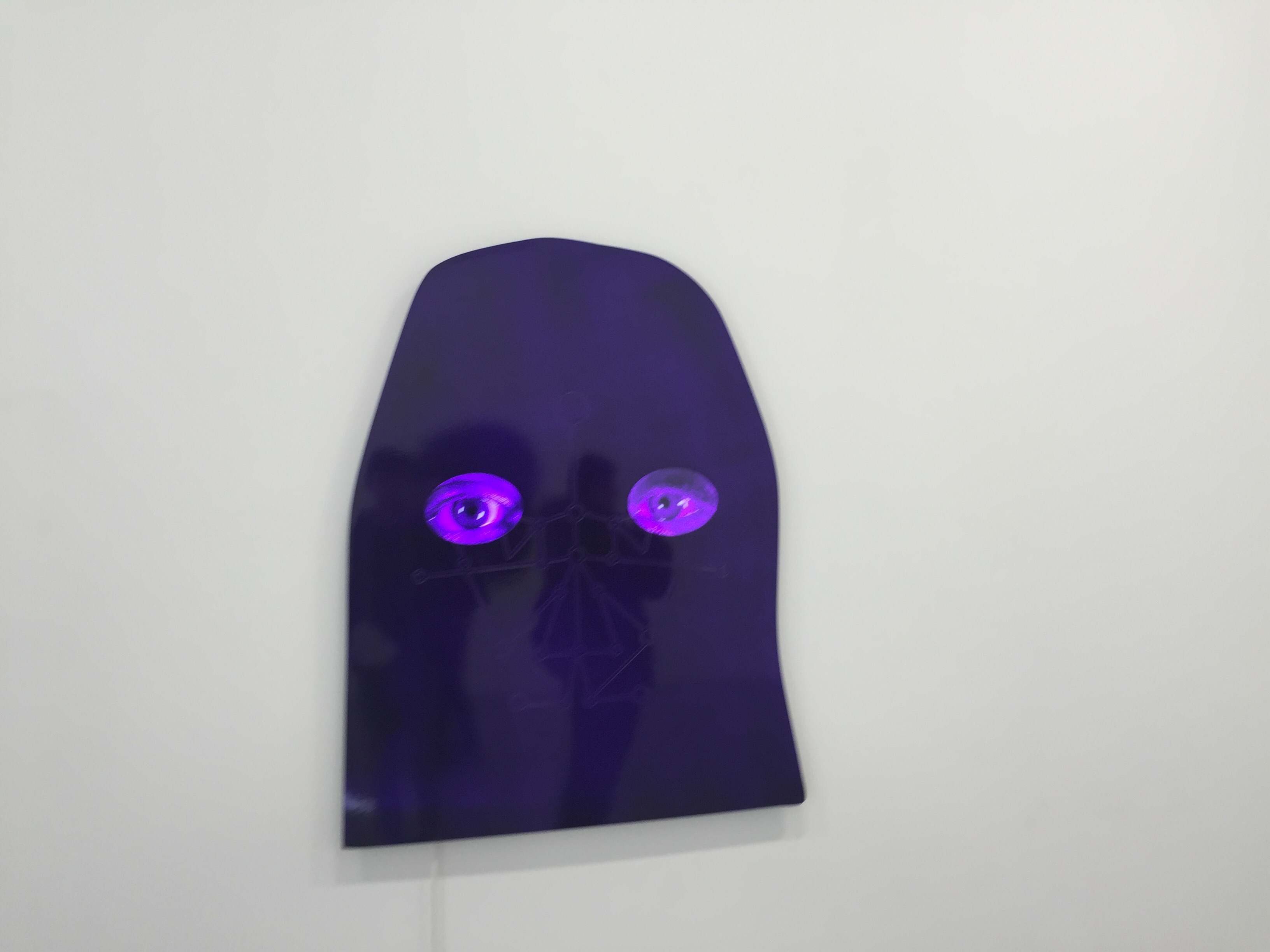 As for the rest of the exhibition, Oursler filled the other rooms with Nine wall-hung, stainless steel panels containing traces of now further abstracted facial features. The latticeworks are used to recognize people, transposed here into etched silhouettes constituting the altered identities we are increasingly forced to assume by the strictures of modern life.