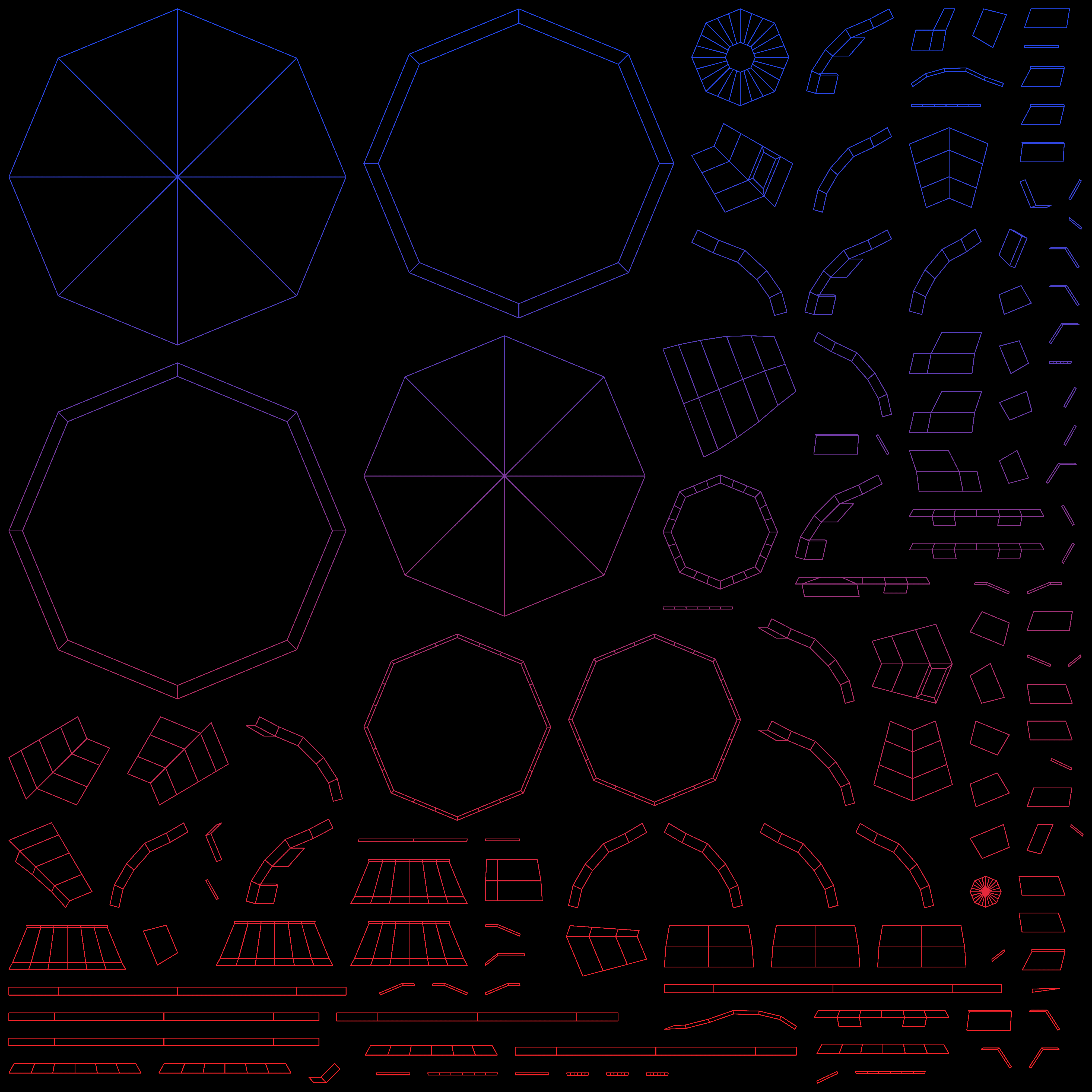 I could then multiply a gradient material and then a noise on the white and black respectively to get this nice retro futurism look. I then saved this UV maps out as png’s and assigned them to material objects in C4D that could be applied to my models. I followed this step for all thirty or so assets I have amongst my scenes.