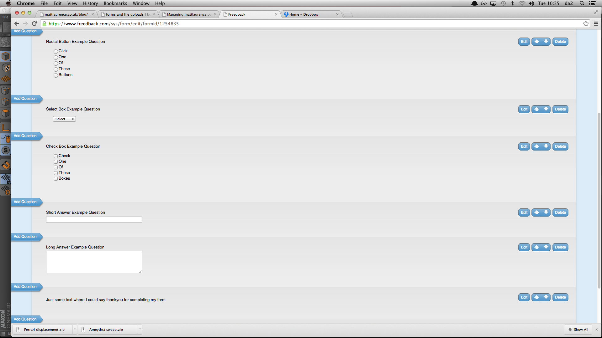 I then had to add all the different questions/question types as well as the answers I wanted. There was also further advanced options for when the form has been completed.