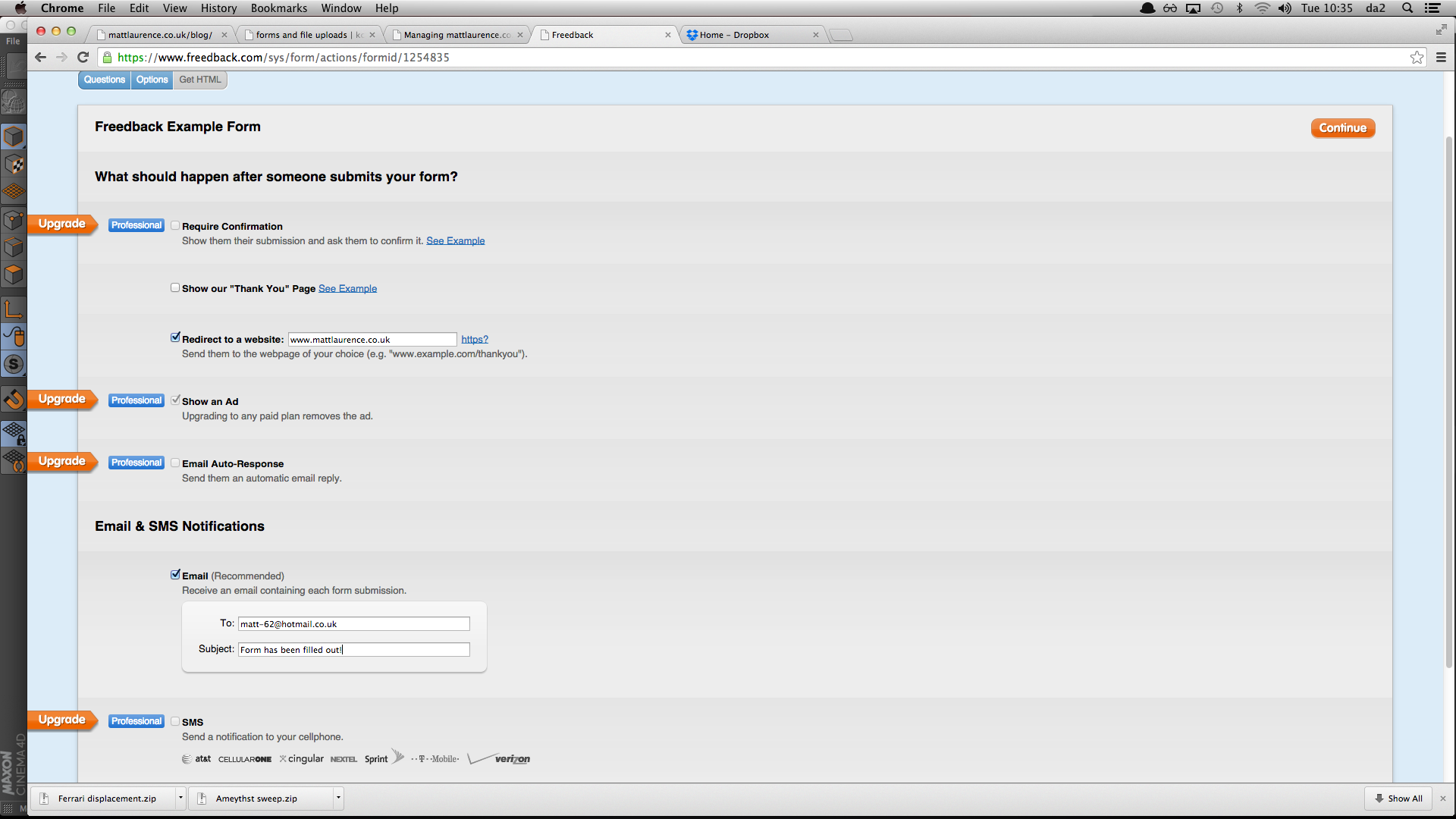 Initally I had to sign up to the website, and create a free account that allowed me to create ONE form using their web tool. This is how the dashboard looks