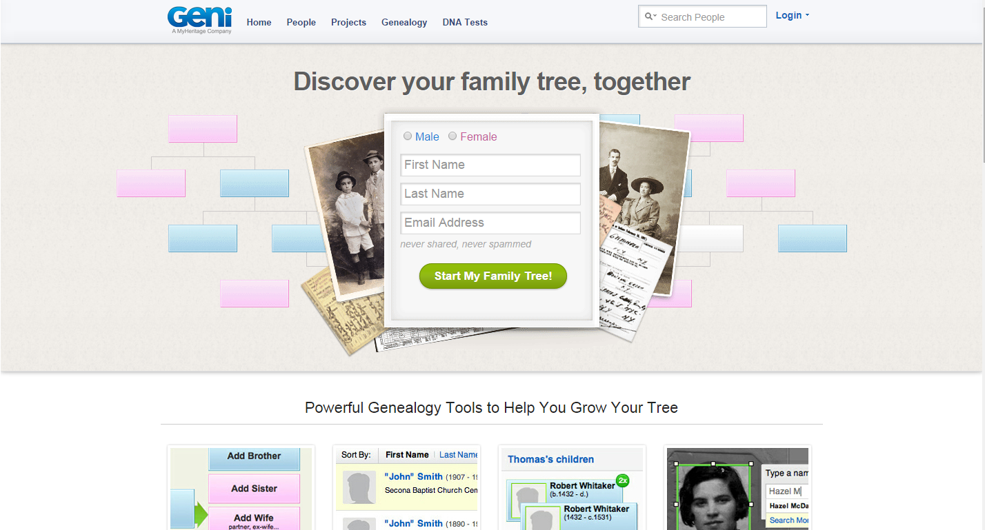 Geni is a commercial genealogy and social networking website, owned by Israeli private company MyHeritage. Launched on January 16, 2007, theWeb 2.0 company stated that it aimed to create a family tree of the world. While family profiles are private, Geni’s mission is to create a shared family tree of common ancestors. By combining research into a single tree that users work on together, users can focus on verifying information and on new avenues of research, rather than spending time duplicating research that others have already done. Over 98.6 million profiles were created on Geni by over 5.8 million users as of December 2010. Geni was the original parent company of enterprise messaging service Yammer, which became part of Microsoft on July 19, 2012. In November 2012, Geni was acquired by MyHeritage.