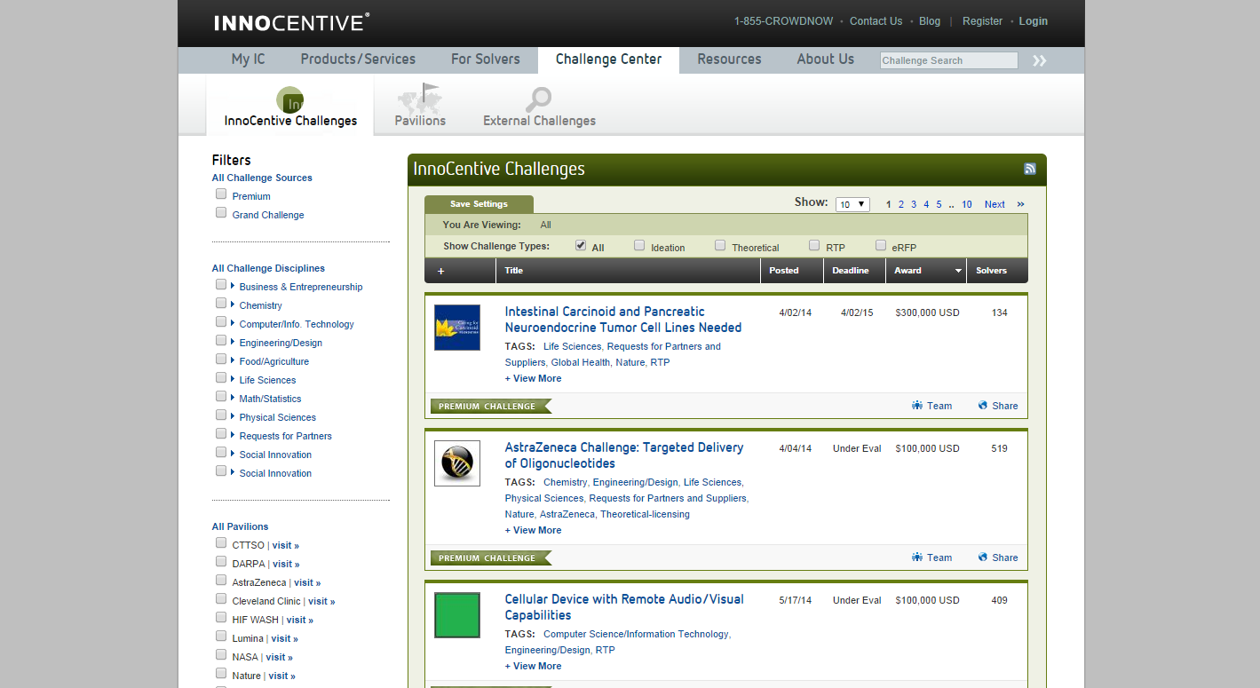 1) https://www.innocentive.com/ar/challenge/browse