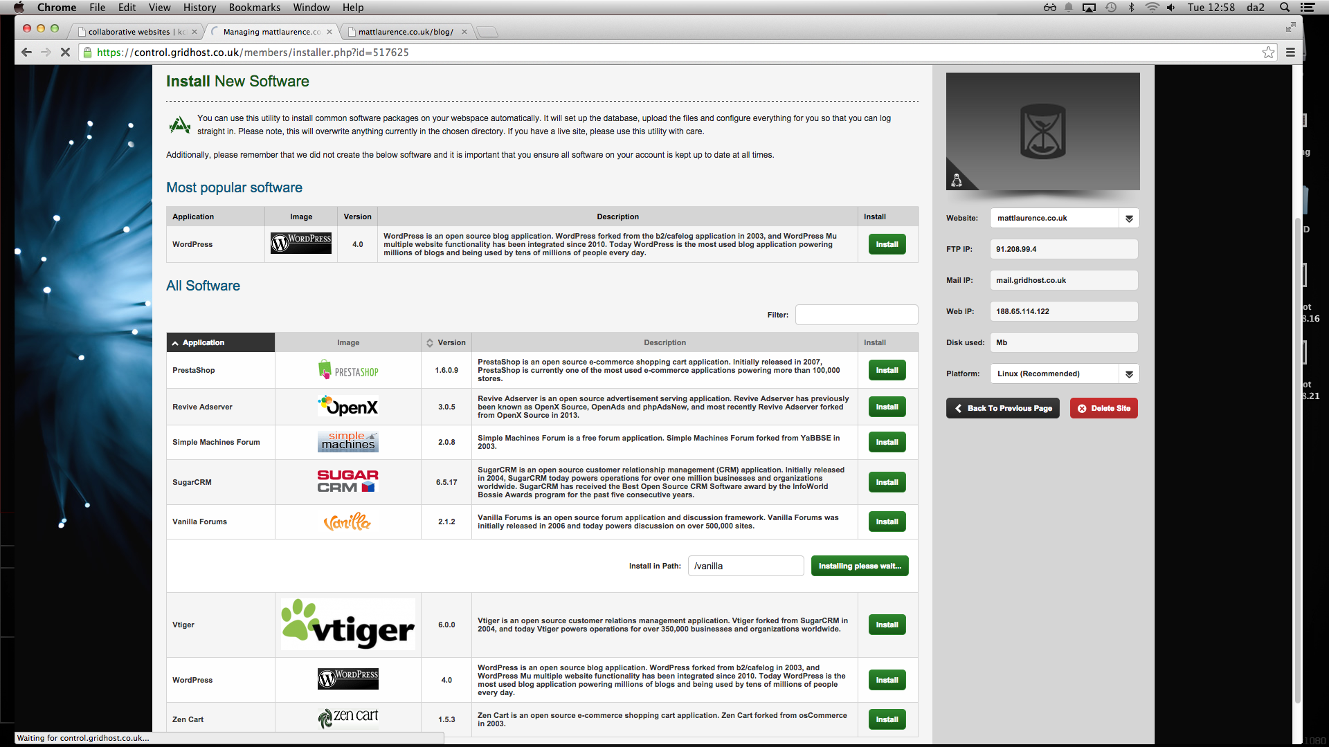 The first forum I installed was Vanilla Forums. This was hosted on TSOhost already.