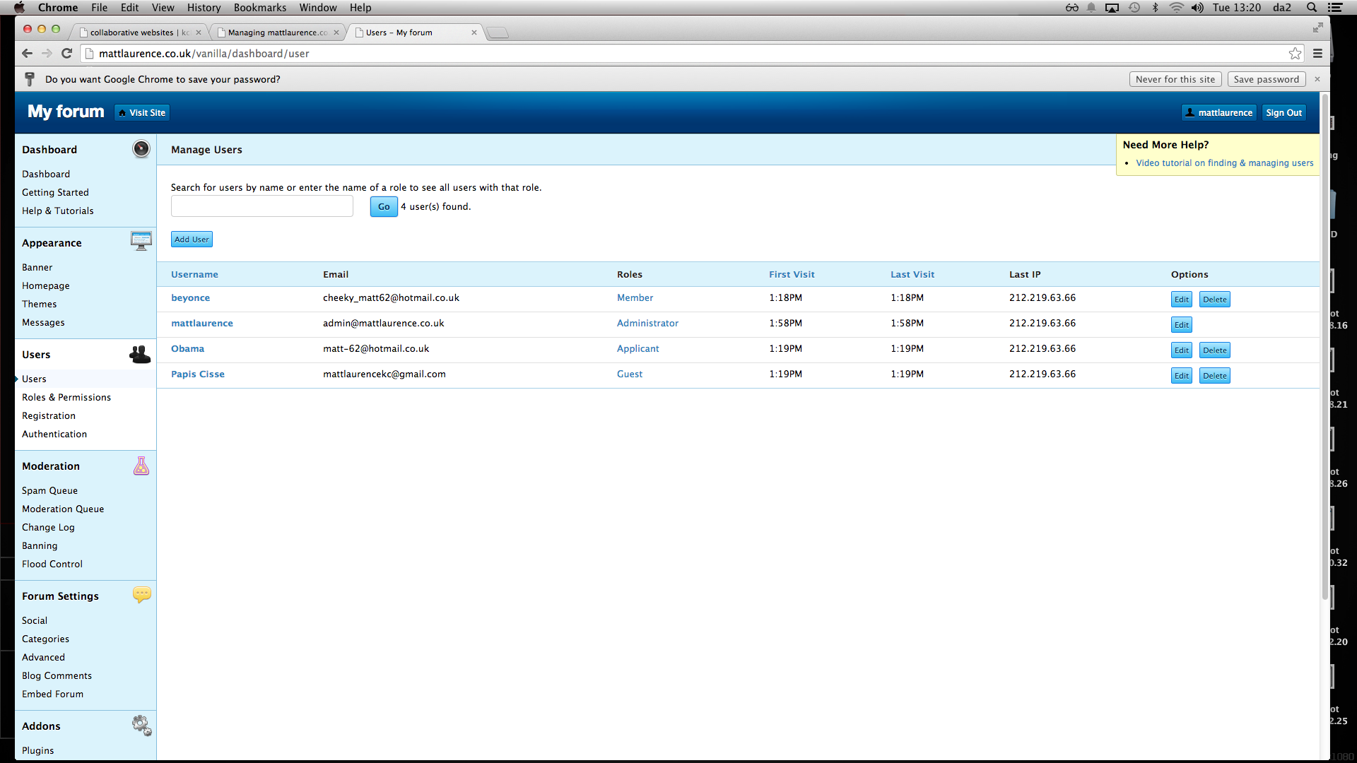 From here, I have several options to customize my forum and there are various actions I can take as an administrator.