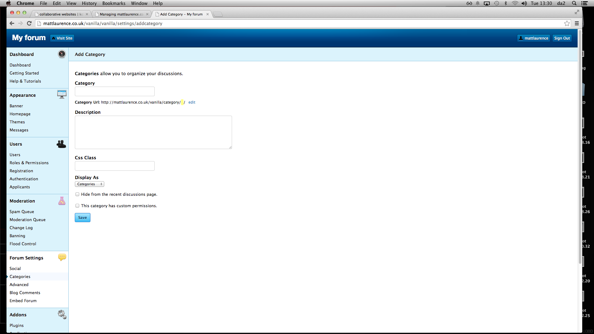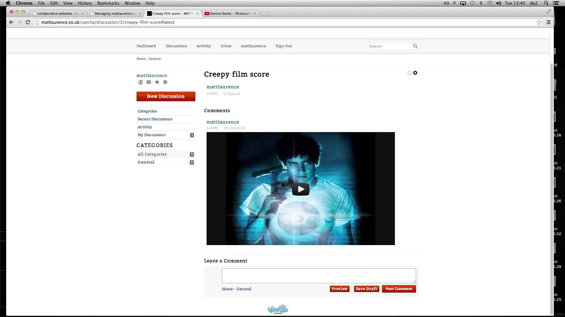 Once the forum is set up, I can begin to start posts and discussions. These can be grouped into categories, depending on the topic of the discussion. Users are then able to comment back, share links and post videos in response.