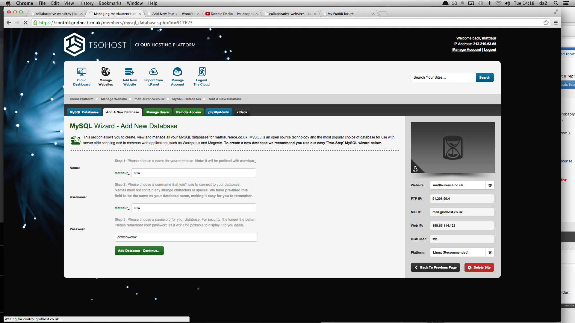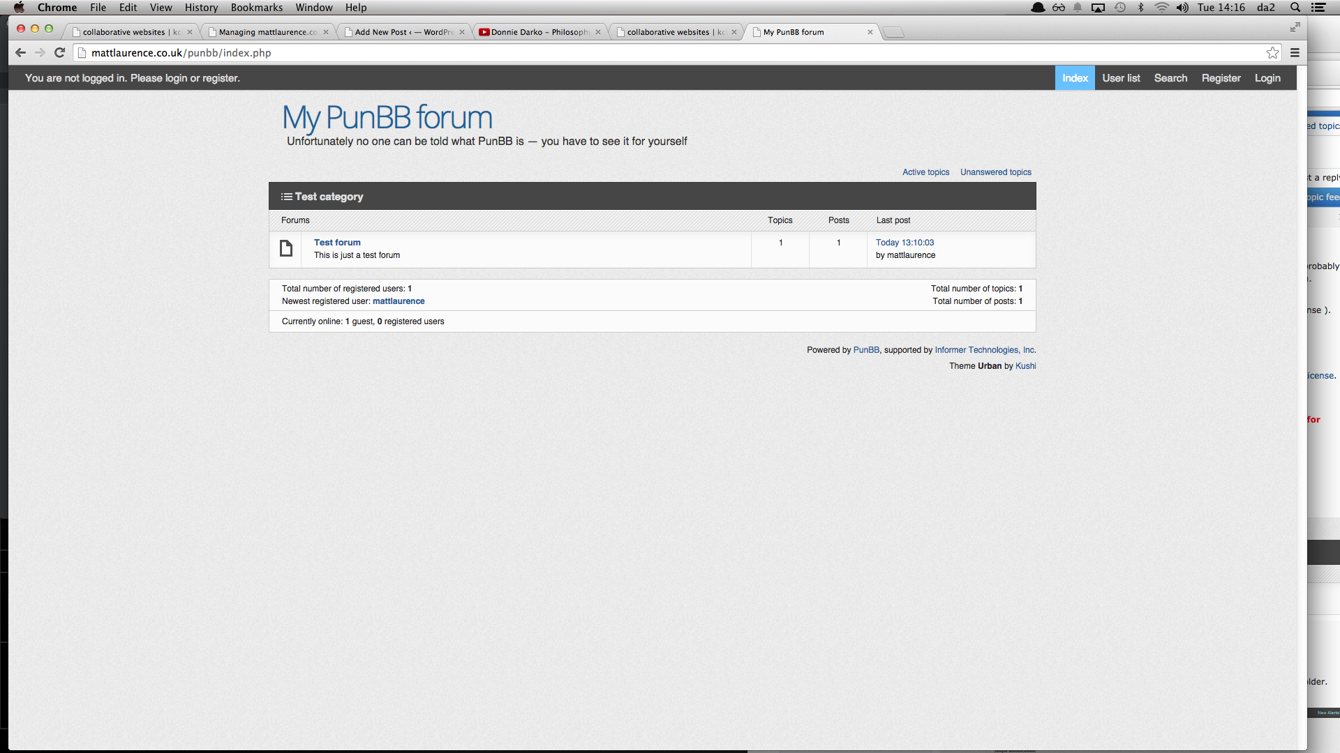 The second Forum I had to set up was PunBB, an application I found on the internet. I had to set up my on FTP and then add my own SQL database.