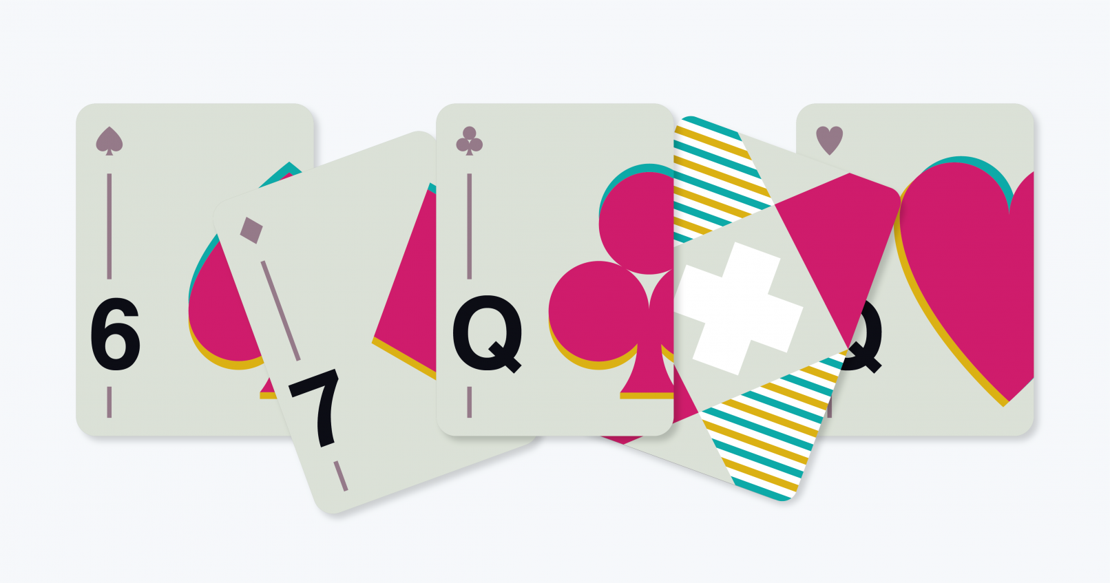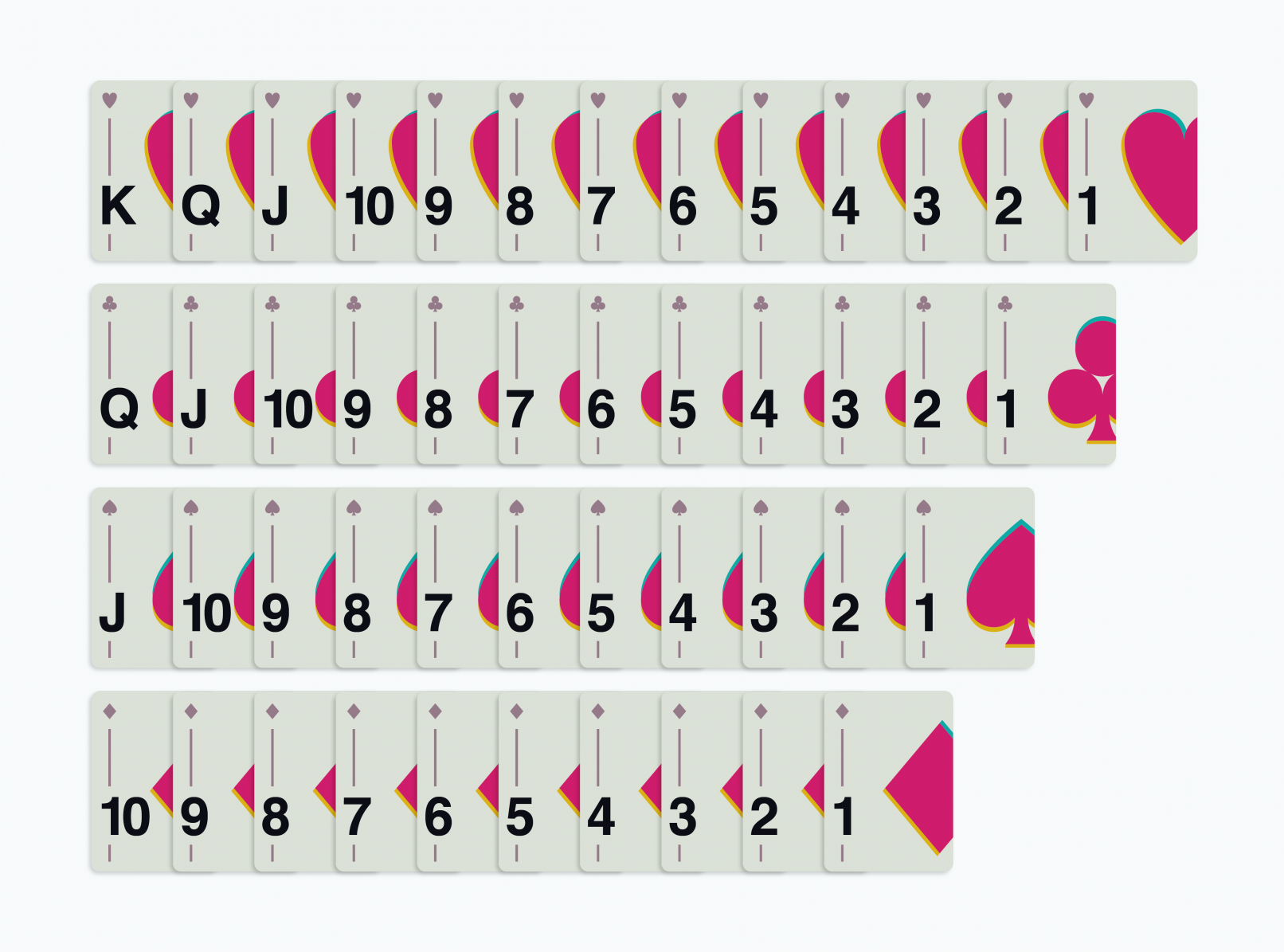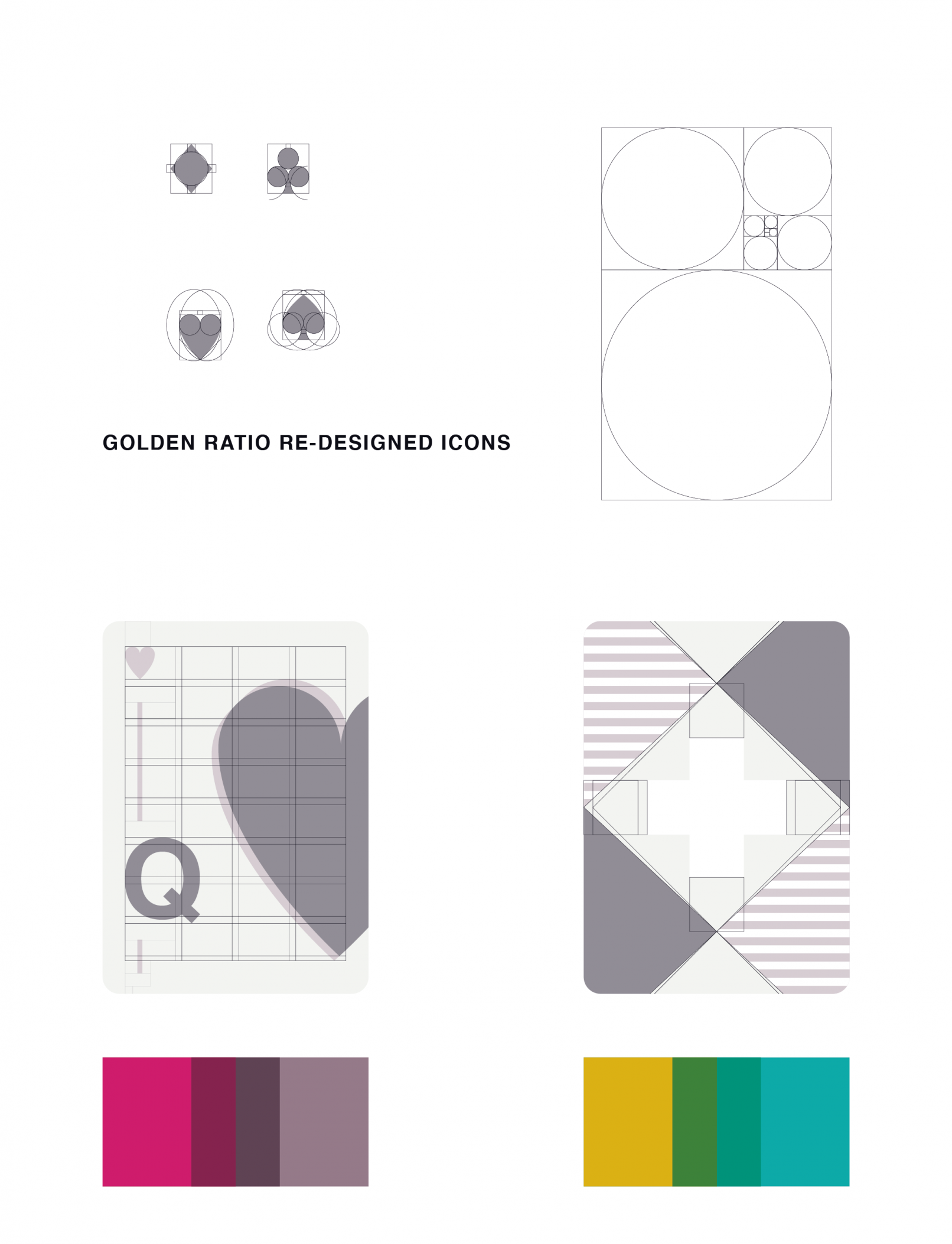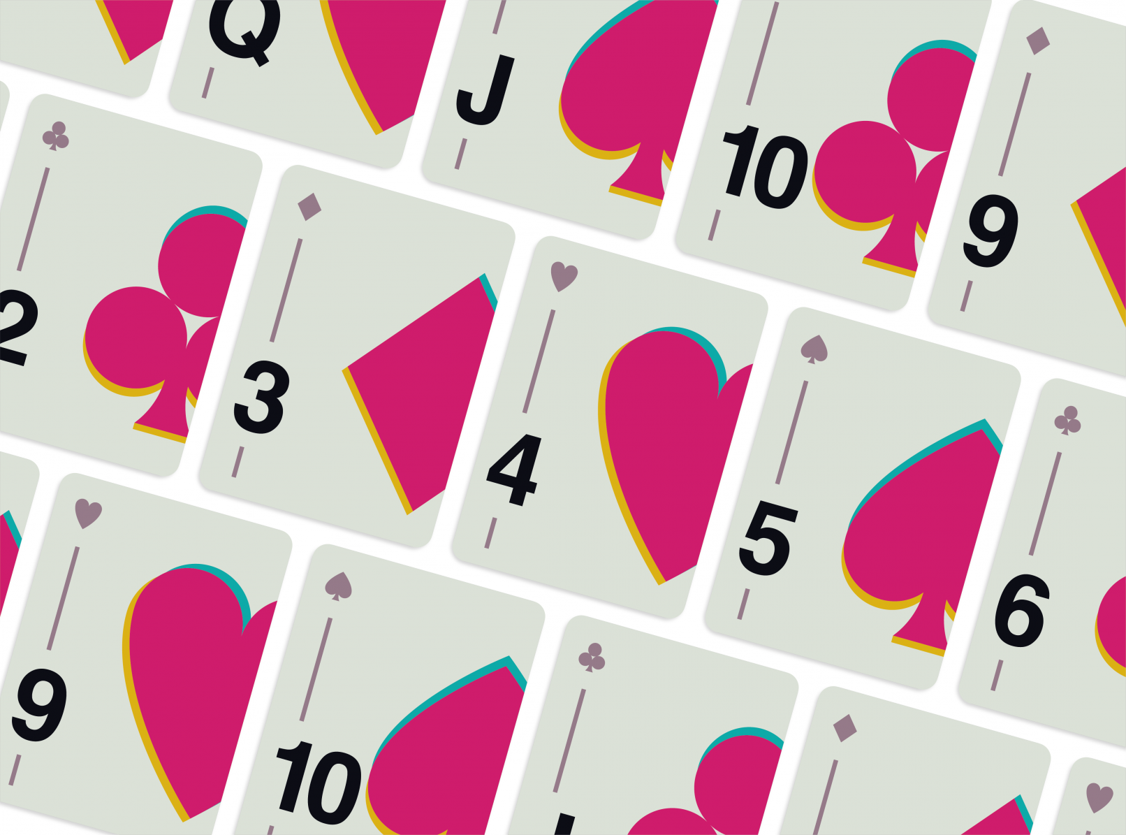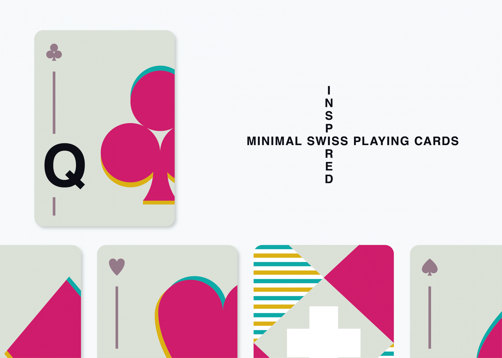 Minimal playing cards inspired by 1950’s Swiss design, in which images & text were organized into geometrical grids used together with sans-serif typefaces.