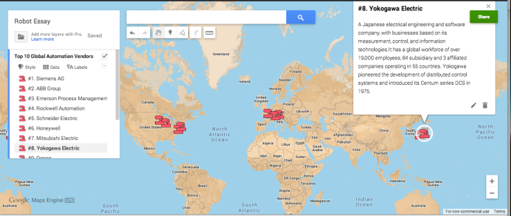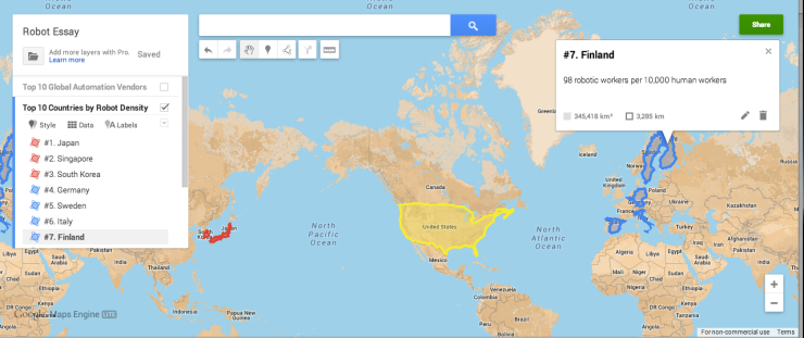To go alongside this, I also created a google maps project, which again details some general/interesting information about robotics in the world we live in.