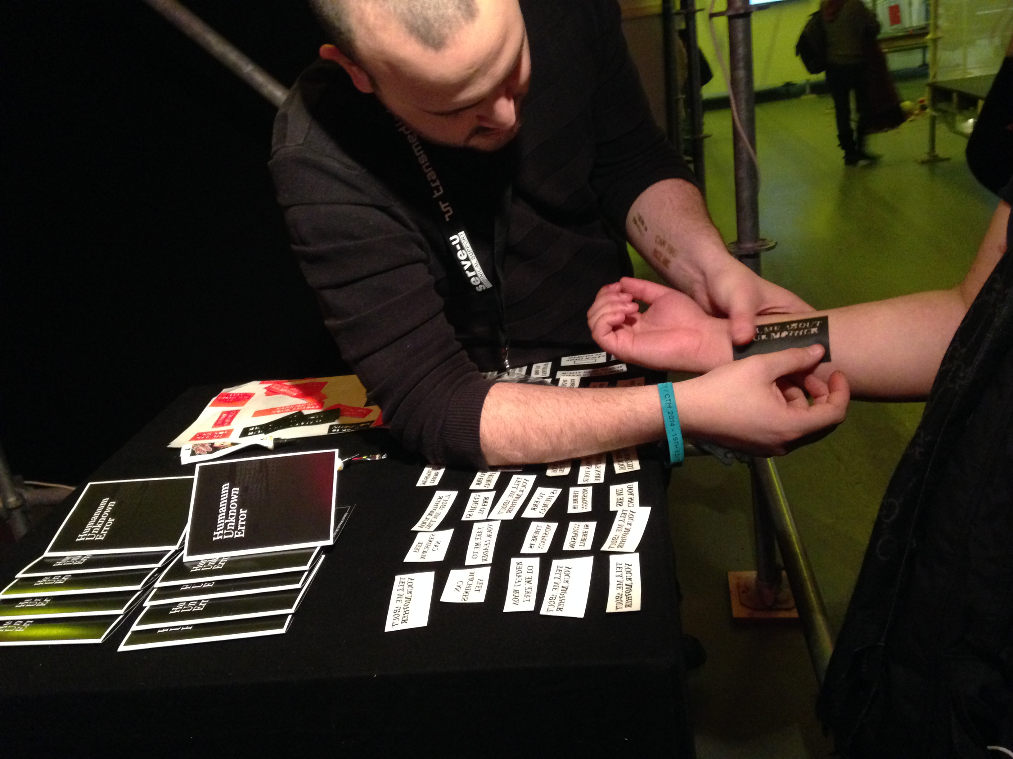 Transmedial festival was an absolutely crazy exhibition. The show featured very modern abstract digital art, all displayed together in one very large, badly lit room. The room had a system of scaffolding poles and nets placed about so that each piece on the bottom floor was displayed underneath the support poles for the second floor, either just on the floor or tucked in between the scaffolding poles. This made it very hard to view the show as you weren’t sure whether some of the pieces were part of the exhibition or not. There wasn’t even any information about the stuff on display so I wasn’t impressed with how it was laid out at all. There was still a strong theme of digital art, as all the pieces I saw were either about or using technology to show a weird concept. To continue that theme, one of the fairly unique things the festival did was to hack everyones phones and send out a series of strange text messages to make it look like a robot was hacking you or something. As I didn’t understand most of the things that went on in the show, I can only really talk about the one guy I did like, who was painting captcha phrases on peoples arms. He explained it that although a computer may class someone as human if they correctly enter the captcha you can only really be assured by physically seeing this person. Ergo if you can see the captcha on my arm then i’m human and if I can see yours, so are you. I thought it was a really interesting idea, and although it had no actual artistic value as he was just painting over stencils, it did make me think, unlike any of the other pieces. Overall I wasn’t really impressed by the event, as it was the one I was most looking forward too. There should have been a tour guide to explain the pieces as they were so abstract half the time it was impossible to guess and they should have been laid out in a clearer fashion, as it was just a mess.