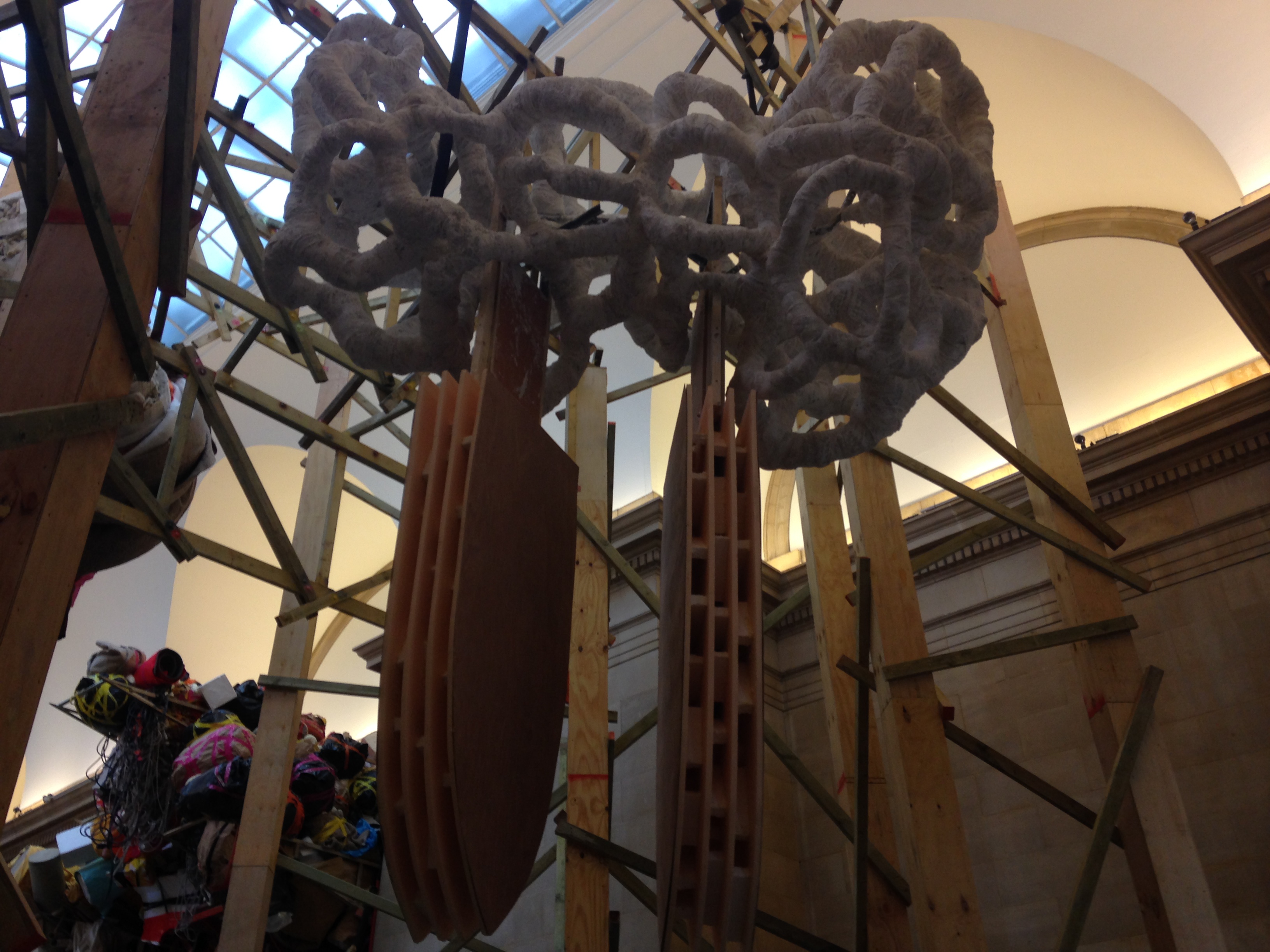 The general architecture of the installation was heavily based on that of a dock yard, with the tall timber beams and scaffolding supporting and suspending her creations in the air. Some objects were strewn on the floor and while others literally hung in the air, however it was clear to see where one piece ended and another began.
