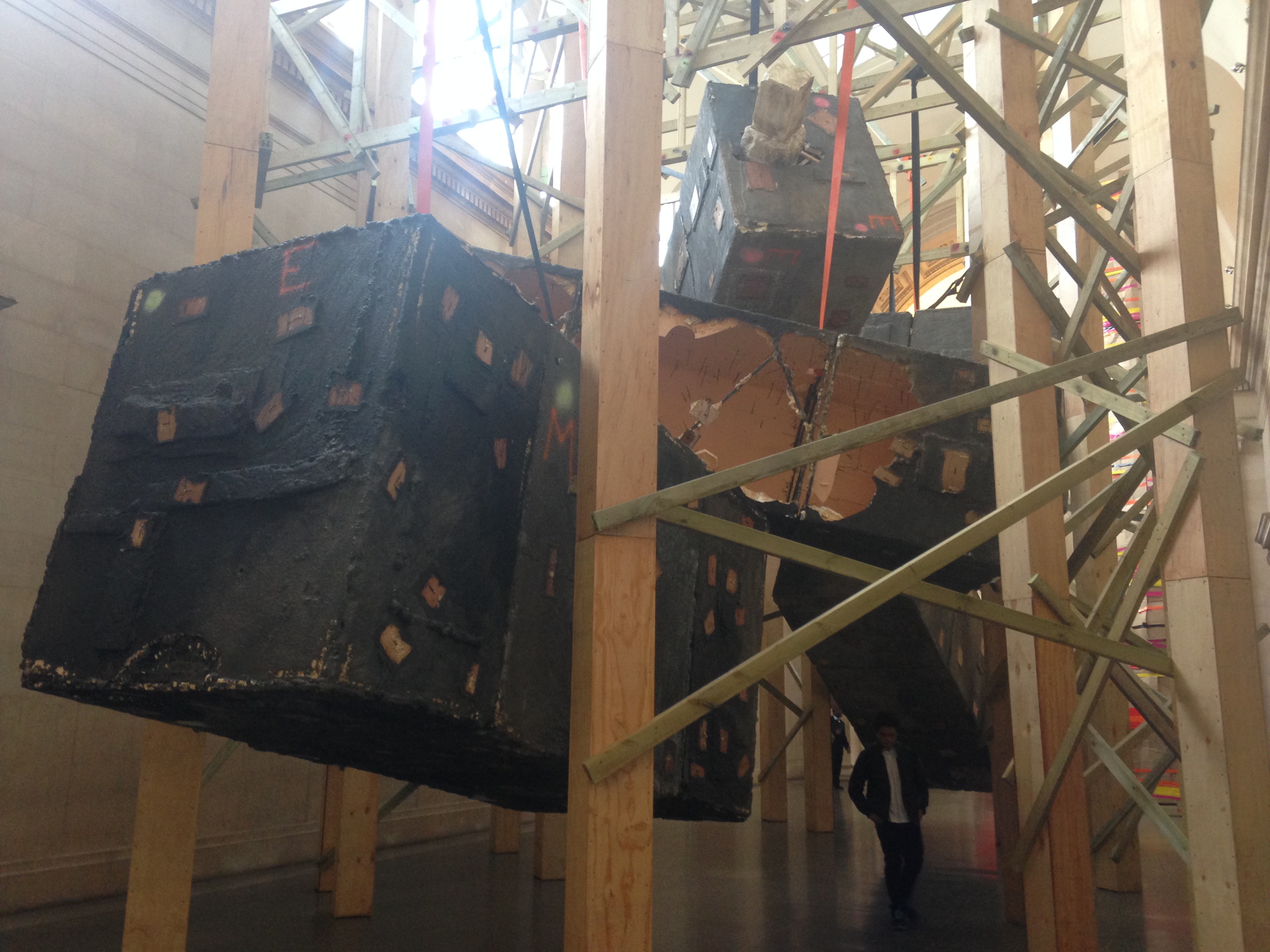 In it, she has filled the 100 metre long gallery given to her, with monumentally sized, obtrusive and invasive installations that challenges the experience of viewing.