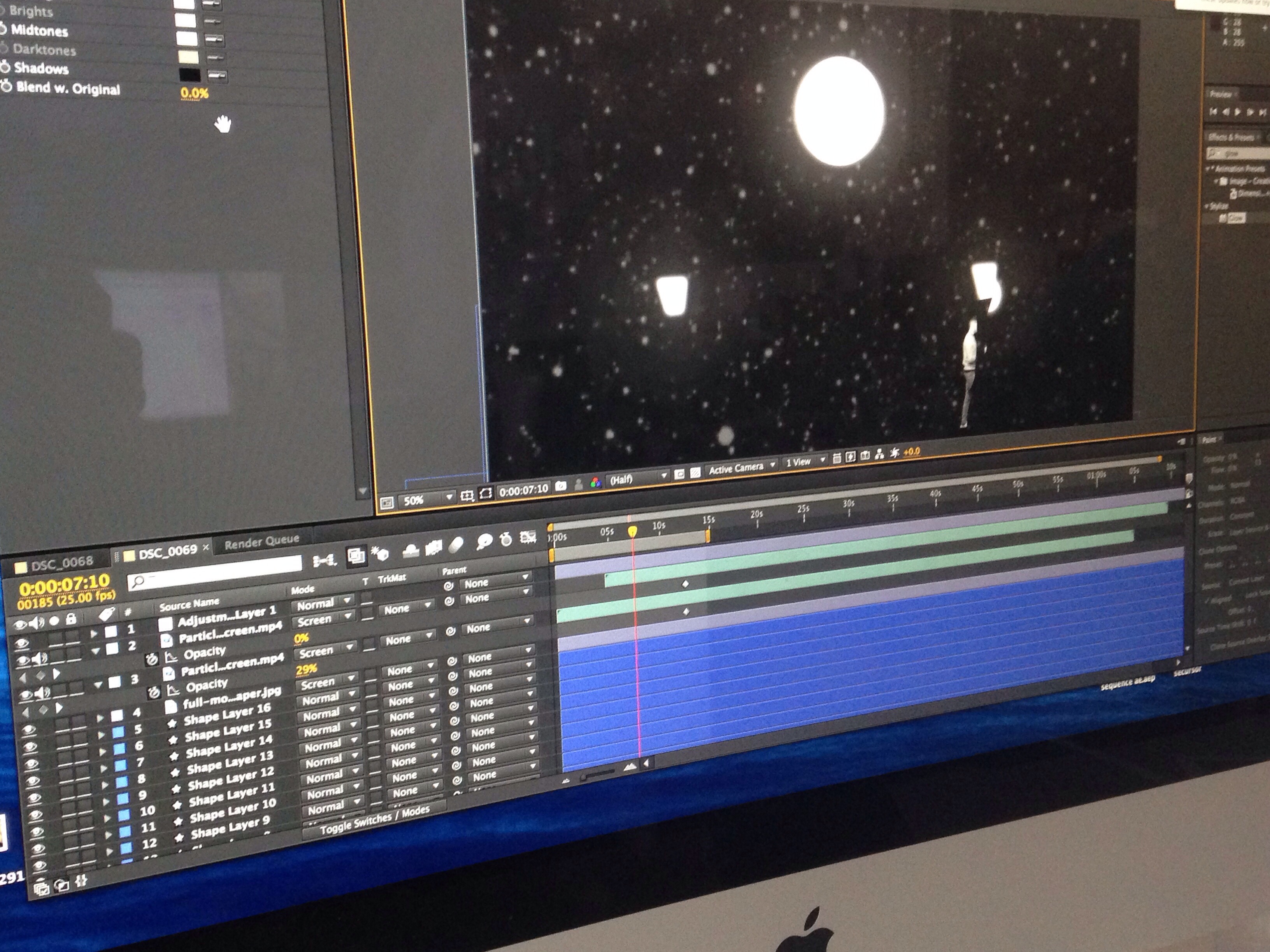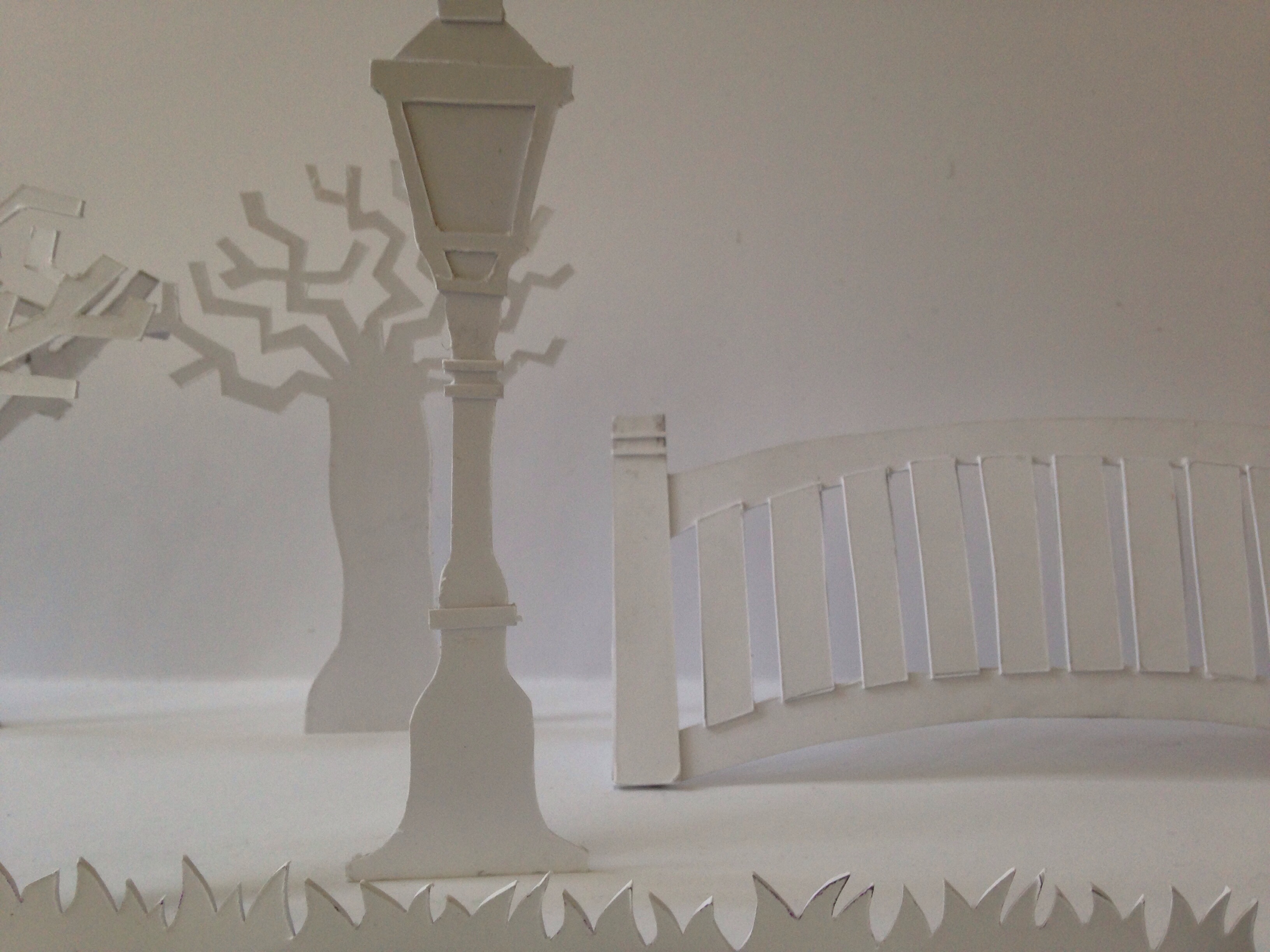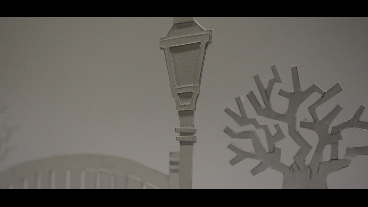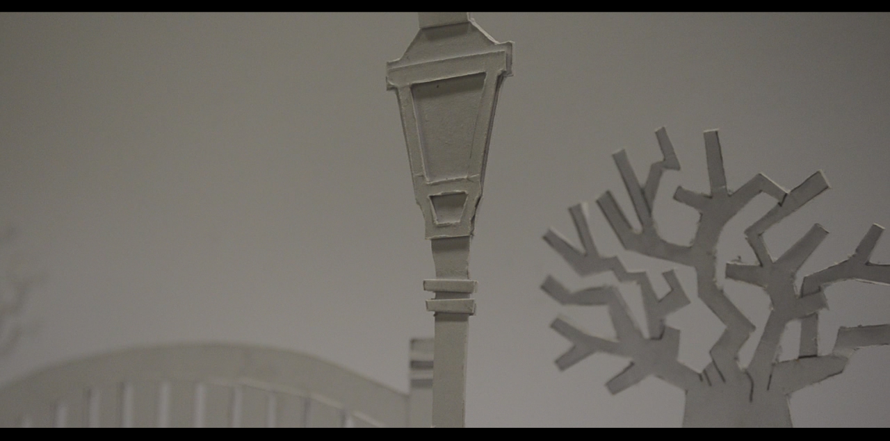 We designed and cut out our set and created a film on after effects to project onto it
